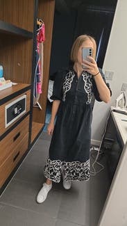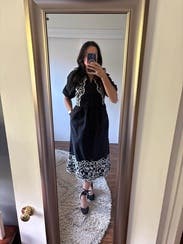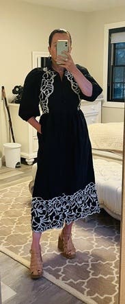 I ended up wearing this for work, it is a great alternative to a standard black dress. I could have sized down one for a little slimmer fit but loved embroidery and that it has pockets.