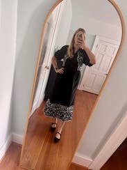 Love this dress. Such a cool style for a classic black dress. Paired it with a belt and was super comfortable
