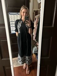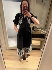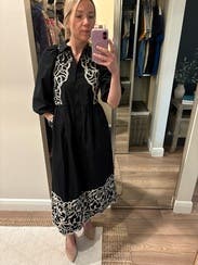 Loved the detail on this dress! The embroidery goes around the back and is very flattering. Comfortable dress to wear. I wore it to work but would be nice for lots of events.