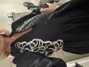 Wore it for work, 25 wk pregnant. Was missing a button at the chest, but I was able to sew a new one on. The chest buttons gaped so I used fashion tape however it was quite tight in chest so kept gaping open. Take this with a grain of salt since my chest is larger than normal right now (full 34D).