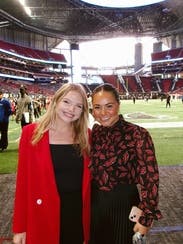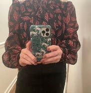 Loved this one! Couldn't tell if it was lips or leaves but regardless it was great for a Galentine's dinner! Long enough in the back that I wore it with leather spanx and boots. Tucked it in the front.