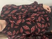 From far away, the pattern looks like lips… it’s not. It’s leaves. Which is a lot more boring than lips. Still made for a cute too for date night. Would also be perfect to wear into the office.