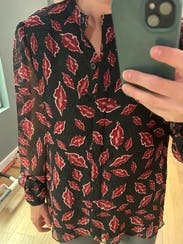 Love that it looks like lips!!! 👄 buttons are not too annoying. Sleeves are see through. Fun vibe for under a suit or to wear to brunch on the weekend!!! Rent it!!!