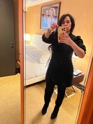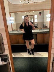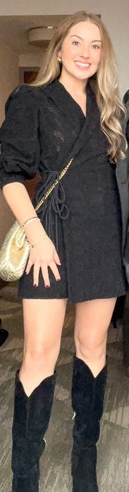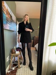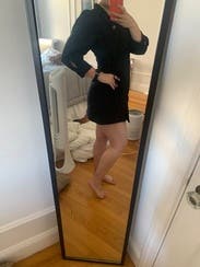 This dress is super cute. I really loved the texture and details to a black dress. It was short but tights helped with that!