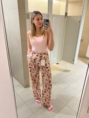 I wore these to my bridal shower because i didnt want to wear anything too "bride-y". Still early spring so I thought the flowers were nice. The pants are super comfortable, didn't love the print in person as much in the photos but overall, an easy comfortable pant.