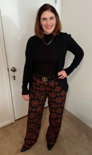 These pants are comfortable and easy to style — def recommend renting with the matching top. High quality, heavy and a great fit.