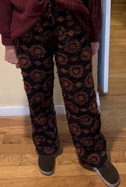I loved the pattern and fit on these pants and they were comfortable. Only issue is they were very long on me, so I had to pin them up to wear them out.