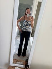 I love the pattern and shape of this top, easy for pairing with different bottoms. I feel like this runs large, but was able to make it work because of my belly. Wore this many times and will rent again.