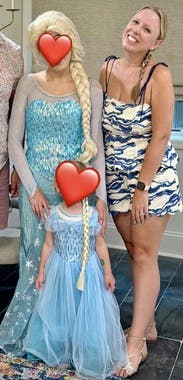 I went two sizes down in this one, but would’ve been better with only one. Still worked out—wore this set for a “frozen” themed birthday party.