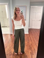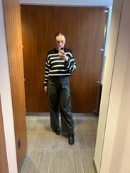 These pants are so cute and super fun to style! They look great with a simple tee but also work well with an oversized top. I probably would have kept them if I didn’t already have so many similar pieces in my closet!