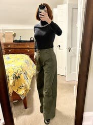 The shape of the pant is quite flattering but I found the material and color to read a bit more cargo pant than I was expecting. I think the word "trouser" in the name is a bit misleading as they feel like a much more casual pant. But fit was good and very comfy!