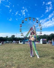 Fun barely there top! This top ran a little large, but I just tied it extra tight and it worked all day! I loved this set and it's perfect for all your summer music festival needs. Next time I would probably size down 1 size.