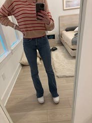 These jeans are fabulous! Stretchy, comfortable, and just enough flare. The Inseem is very long and I had to pair them with wedge sneakers or heels.