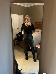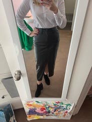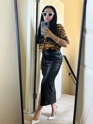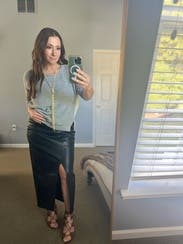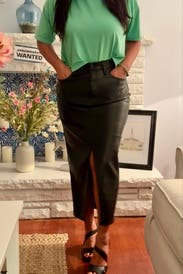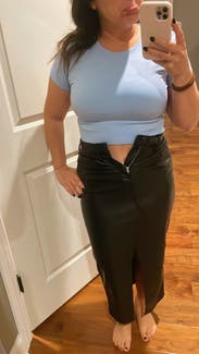 Best version of faux leather I’ve ever felt it was like butter - sexy but also professional vibe I wore with a skims long sleeve body suit and a cute belt and heels obsessed!!!!