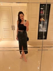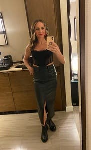 Divine! Loved this skirt, better than a pair of leather jeans. What an awesome asset to a wardrobe. Will rent again. I’m between a 28-29 and the 28 was great.