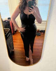 Sadly, I couldn’t wear this one. 29 usually works for me as a size 8, but not this time. If you aren’t sure…size up in this one. Fabric isn’t too thick and everything else seemed great. Would rent again with a larger size :(