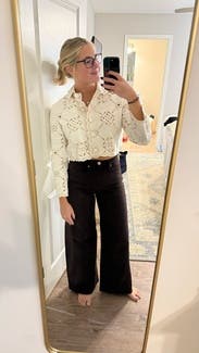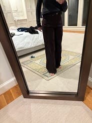 I have a small waist and it’s always hard to find pants that don’t gap in the back, but this one fits beautifully. It’s snug at the waist without being tight, and the fabric is soft and really comfortable. I love the color, and honestly, it’s one of my favorite pants I’ve rented so far. I could have gone one size down, but I actually love how it shapes the body.