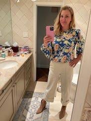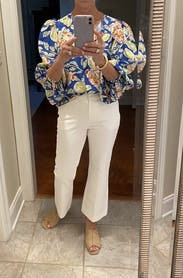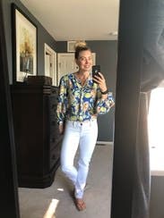 I loved this blouse! So cute tucked into white jeans! Perfect for spring.