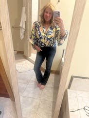 Loved this top! Style and colors were great. The sleeves were a little full, but I loved wearing it