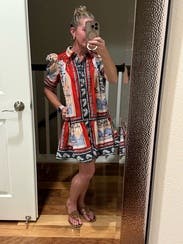 This dress is extremely wide and pretty short. I felt like it was an American girl doll outfit. I had fun wearing it to work on a casual day (though it’s really too short for normal work).