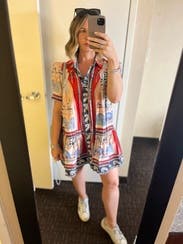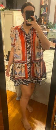 This is a bit oversized, but it’s a great dress just to throw on for the summer. Can be slightly short for tall girls. I did wear boy shorts underneath. Love the print.