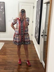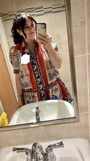 Wore this for a day of walking around/shopping in NYC. Cute and fun print but it does run big and, IMO, looks best when belted.