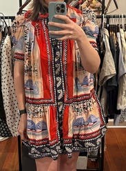 Fresh and playful, the Hunter Bell Leslie Dress in its vibrant Coastal Village print brings cheerful energy to any sunny day. Pair it with white espadrilles and a woven straw clutch for an easy, warm‑weather look that stands out.