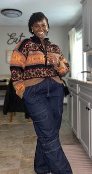 Loved the cropped and boxy look in the cozy sweater. Wore it with wide leg black sweat pants and with black pants and turtleneck to work.