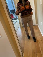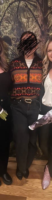 Loved this sweater. Wore to a casual friend meetup before a fall Minnesota wedding. I loved it! This pic isn’t great but it fit close and flattering