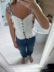 The top was perfect for a summer evening. The embroidery, the colors, just all-around adorable. I wish I would’ve gotten a size down!