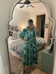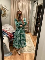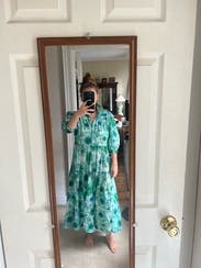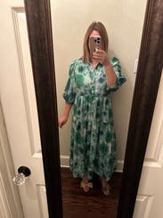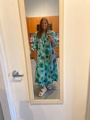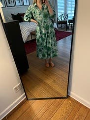 Loved this dress so much. I was worried about the loud pattern but it was the perfect dress to throw on and go! Dressed it up for several showers and down for date night with friends. Received so many compliments on it.