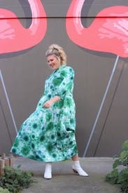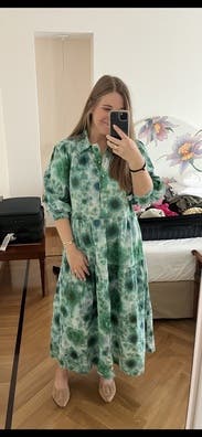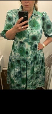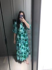 Trendy, comfortable, floaty, easy, relaxing, eye-popping, gorgeous green summer dress. I never wanted to take it off. Runs large but that could be the look. Rent.this. Probably not for petites as I could see it overpowering the body.