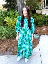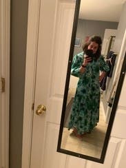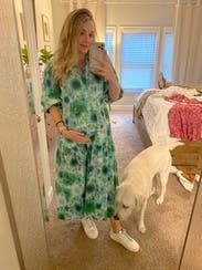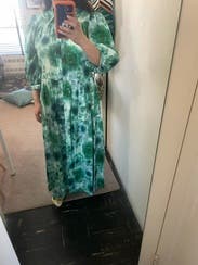 So comfy but glam and trendy. I didn't look pregnant in this which I often can in this style with a larger chest. Loved the green tie dye and a good length for petites.