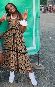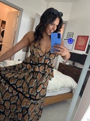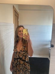 I wore this dress for a brunch date and an outdoor music festival later on. The dress is so cute and versatile for dressing up or down. I felt stylish and comfortable. I didn't need a bra for this look and adjusted the straps accordingly. I would definitely rent again!