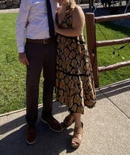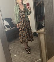 This dress was absolutely perfect. It fit in all the right areas and the pattern/color were perfect for a fall wedding! I would definitely recommend this because it can be dressed up or down for any occasion.
