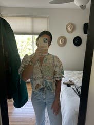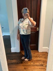 Y'all. I wish I could've kept this one. This is the cutest top I've probably ever worn. The colors are so pretty and show up very well, the fit is perfection, the sleeves are the right amount of puffy, and it's so light and comfy. My mom also wore it after me and was obsessed too. The lighting in this pic kinda sucks because it def looks better in person.