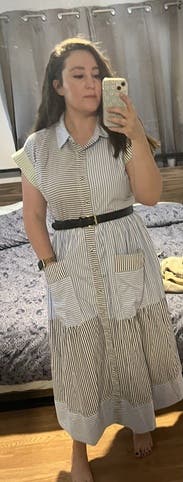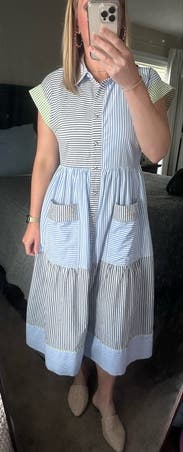 A new take on the traditional striped cotton shirtdress and it's fabulous! I wore this to a graduation ceremony and was cool and comfortable throughout. I would recommend!
