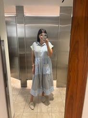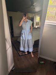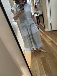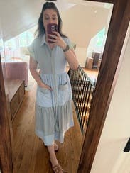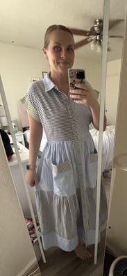 One of the physicians I work with commented on the quality of this dress. The fabric elevates it from a normal shirt dress. The length was great on my 5’ frame with clogs. I felt put together, and just added a belt to make the look!