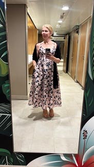Wore this to a wedding and got lot of compliments. The chest area is a little smaller so if you’re bigger busted it might be tricky but I was fine. The baby doll poof is a little maternity ish too as others said but it’s just the fit and wasn’t so noticeable. Also super comfortable and had pockets!
