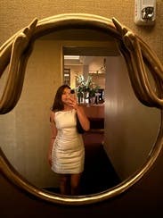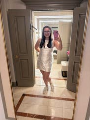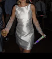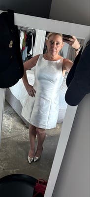 It was getting bride vibes but it was cute and chic. Short enough, shiny white fabric and more fitted in the top than I thought and created a nice hourglass shape. Beware it is white and subject to stains easily