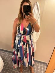 Loved this dress. Because of the waist tie it’s so flattering. Had to add a bandeau top since I am large chested but it works