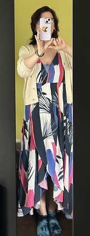 Really liked the pattern and cut. The frills in the skirt were fun to move in. Thought this was great for a dinner evening out but wouldn’t want to wear it all day.