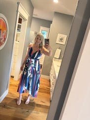 This dress is so comfortable and beautiful. A classic wrap dress so the fit works great. Adjustable shoulder straps which is always a must have for me. I will be renting again!