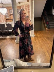 I loved this dress and how comfortable it was. Usually a wrap dress leaves the top open too much with the girls and all, but even though I fit into the large, I went with the XL to help cinch that up more easily and there was more fabric to flow in the front. It was comfortable and flowed so nicely. The pattern of the dress is gorgeous and looked great! I absolutely recommend this dress even if you’re worried about a wrap dress. It’s very flattering as the tie is at a high waist level. Gives a nice shape. It’s a little longer in the back but not quite a high-low dress. I felt beautiful and loved it!