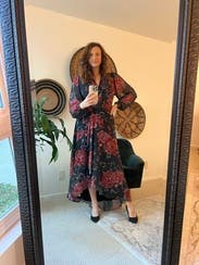 Dress was a little more floral than my usual taste, but I’m stretching beyond the comfort zone. With that said it was extremely comfortable easy to wear would rent it again.