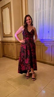 Wore this dress to a Cancer Benefit Fundraiser. I ended up choosing the size 8 as it was a little more comfortable in chest area. Loves that this dress had pockets as well. Got a lot of compliments on the dress as well. This was my first time using RTR and it will definitely not be my last time either.