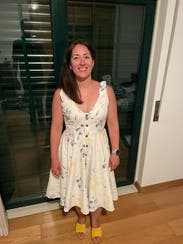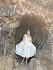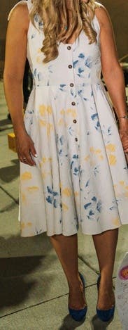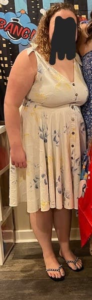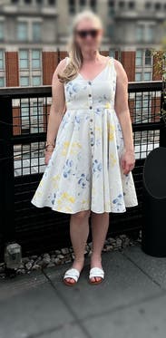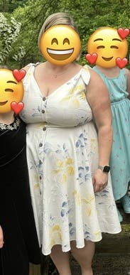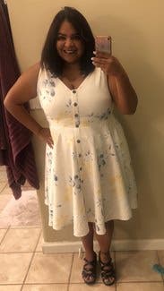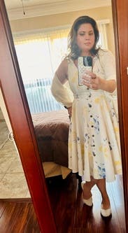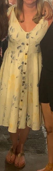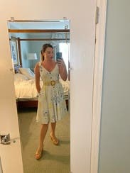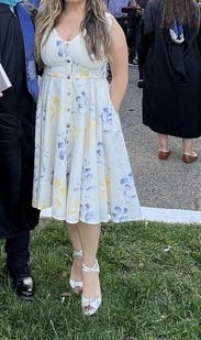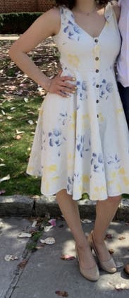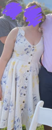 Perfect dress for a late summer bridal shower! It was comfortable and the top can be adjusted based on how tight the bows are tied. It also twirls really well if you like to spin!