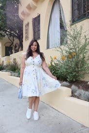 The fit and flare is cute and it pairs well with white sneakers. Super cute daydress.
