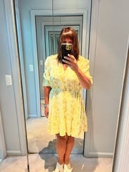 Absolutely loved this dress! Wore it twice- the only complaint was the arms were a little snug above elbow. Besides that, it was an amazing flirty dress- perfect for a date!