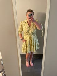 Cute dress with pockets, a little short for me (I’m 5’11) but was great overall